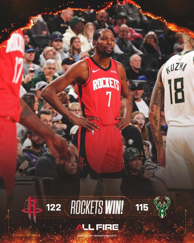 末节决战,字母哥持续冲击篮下暴走,火箭则依靠着多点开花与之缠斗。两队陷入鏖战,关键时刻,字母哥出现进攻干扰球,还有连续罚球不中。申京携手杜兰特连续砍分,帮助火箭扭转了场上局面。依靠着一波17比5的攻势,休斯顿逆转了对手。最终,火箭以122比115险胜对手,上演了14分逆转好戏。