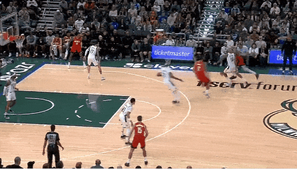 次节再战,雄鹿延续火热手感,开局连砍7分,瞬间将分差扩大至9分!