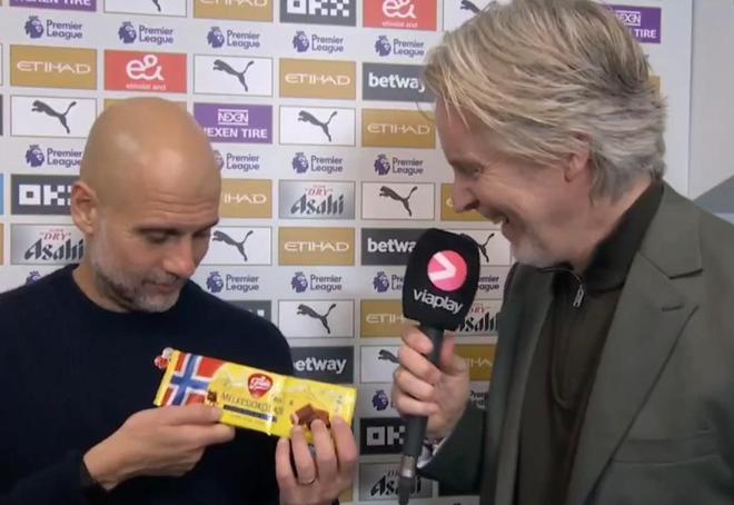 佩普,首先要祝贺你执教生涯完成了第1000场比赛。按照你惯常的风格,我也带来了一份礼物——挪威巧克力。